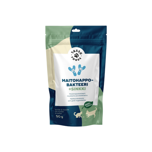 Tassu Foods30,10 €Tassu Foods Maitohappobakteeri + sinkki on herkullisen makuinen ja tehokas maitohappobakteerituote, joka sisältää koirille ja kissoille tutkitusti ...