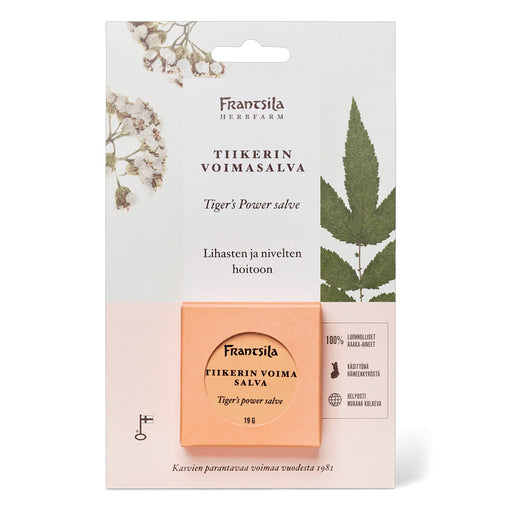 Frantsila17,90 €Tehokas voimasalva lihasten ja nivelten hoitoon! Tiikerin voimasalva hoitaa kipeytyneitä lihaksia ja rentouttaa jumeja. Sen resepti perustuu perint...