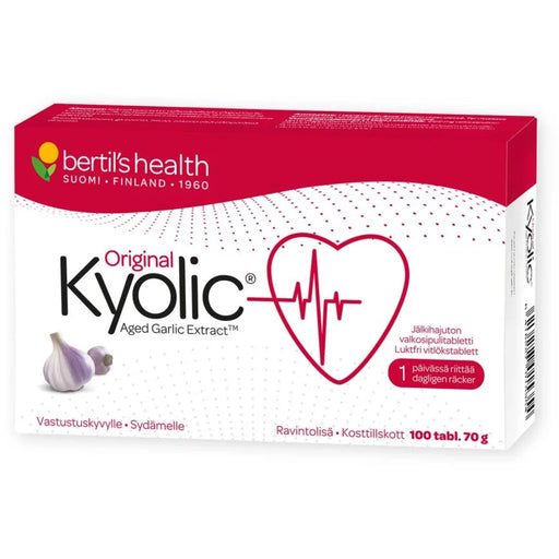 Bertil's health39,90 €Kyolic valkosipulivalmiste 100 tabl - Aito luonnontuote vastustuskyvyn tukemiseen. - Osoitettu tukevan elimistömme omia terveyttä edistäviä toimin...