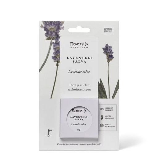 Frantsila11,90 €Monikäyttöinen Laventelisalva rauhoittaa mieltä ja ihoa. Salvan sisältämän laventelin eteerisen öljyn vaikuttavina aineina on mm. linaloli ja linal...